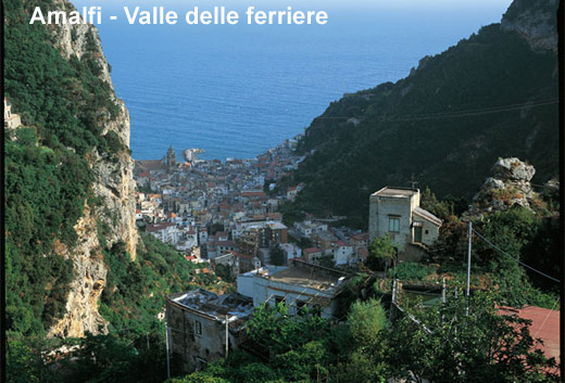 Il percorso si snoda lungo il fiume Canneto, nella valle che fino a qualche decennio fa è stata sede dell'antica industria cartaria e siderurgica amalfitana. Dal centro di Amalfi si risale la strada principale per quasi 900 metri fino al Museo della Carta (sul lato sinistro della strada). Qualche decina di metri dopo si prende la salita a destra e poi si svolta subito a sinistra in via Madonna del Rosario. Da qui in poi non è più possibile sbagliare: si procede sempre lungo la via principale inoltrandosi nella vallata che è di fronte. Lungo il tragitto si possono vedere i ruderi di alcune cartiere: la Cartiera Lucibello, visibile nel fondovalle a cavallo del torrente, la Cartiera Nolli, avvolta ormai nella morsa della natura, la Cartiera Marino e la Cartiera Milano attiva fino agli anni 60. Più avanti si incontrano i resti di una centralina idroelettrica, e, al termine del sentiero che risale il torrente, i ruderi dall'aria cupa e sinistra dell'antica Ferriera dalla quale prende nome il territorio circostante. In questa fabbrica sin dal XIV secolo veniva lavorato il minerale ferroso che i bastimenti amalfitani andavano a caricare fino all’Elba, in Puglia o in Calabria. La fabbrica dava lavoro all’intero circondario: gli operai di Scala erano specializzati nella produzione di carbone vegetale, il prezioso combustibile per le fucine, i lavoratori di Pogerola, sul versante opposto della valle, fornivano la manodopera necessaria alla fabbrica, o venivano occupati nelle loro minuscole botteghe a fabbricar "centrelle" i caratteristici chiodi pogerolesi. L’attività andò avanti fino all’inizio del secolo scorso, quando, ormai fuori mercato, la Ferriera venne dismessa, segnando l’inizio del lento ed inesorabile abbandono della Valle. Abbandono non del tutto deleterio se si pensa che, una volta concluse le attività umane, la natura ha ripreso il suo dominio incontrastato. Natura selvaggia che ha creato lo scenario tanto caro ai grandi viaggiatori romantici: Shinkel, Hare, Richter, Goethe per citarne solo alcuni, che hanno immortalato questo territorio nelle loro opere. La vegetazione della Valle delle Ferriere, per il particolare microclima di tipo subtropicale dovuto alla presenza di torrenti e di umide brezze marine, venne accuratamente studiata già dal 1859 dal famoso naturalista tedesco Karl Haekel nel 1859; di particolare interesse botanico: ciclamini, orchidee selvatiche, Pteris vittata, Pinguicola hirtiflora (una piccola pianta carnivora), Erica terminalis, ed una rara specie di felci giganti che risalgono al periodo Terziario, la Woodwardia Radicans o Felce Bulbifera Gigante.